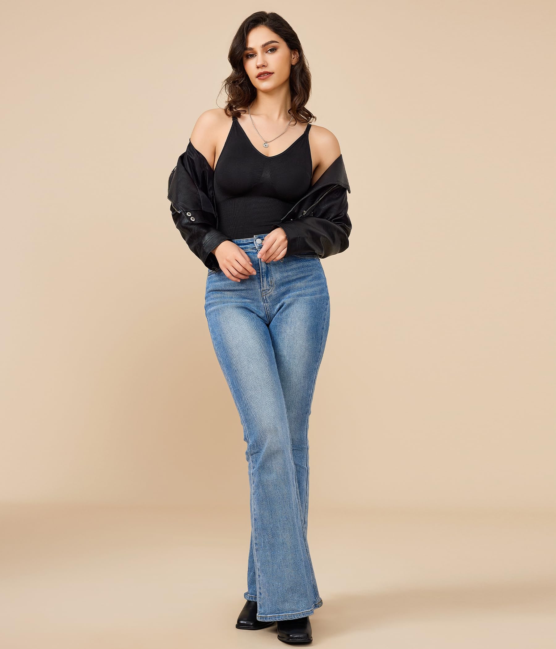 BRABIC Womens' Seamless Sleeveless V-Neck Bodysuit Shapewear Tummy Control